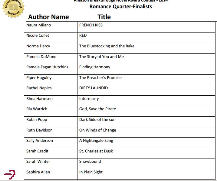 The thing too is that really the next round doesn’t really mean a whole lot, there’s no extra prize for it (other than the … hey I made it to the semi-finals blurb I could put on my book cover), it just narrows down the pool to the top 5 in each genre for the judges to pick the 5 finalists from (1 from each genre). I’m fairly certain (though it would be really cool if I was wrong), that I won’t make it all the way to being a finalist. But if I could make the top 5 that would still be awesome!!